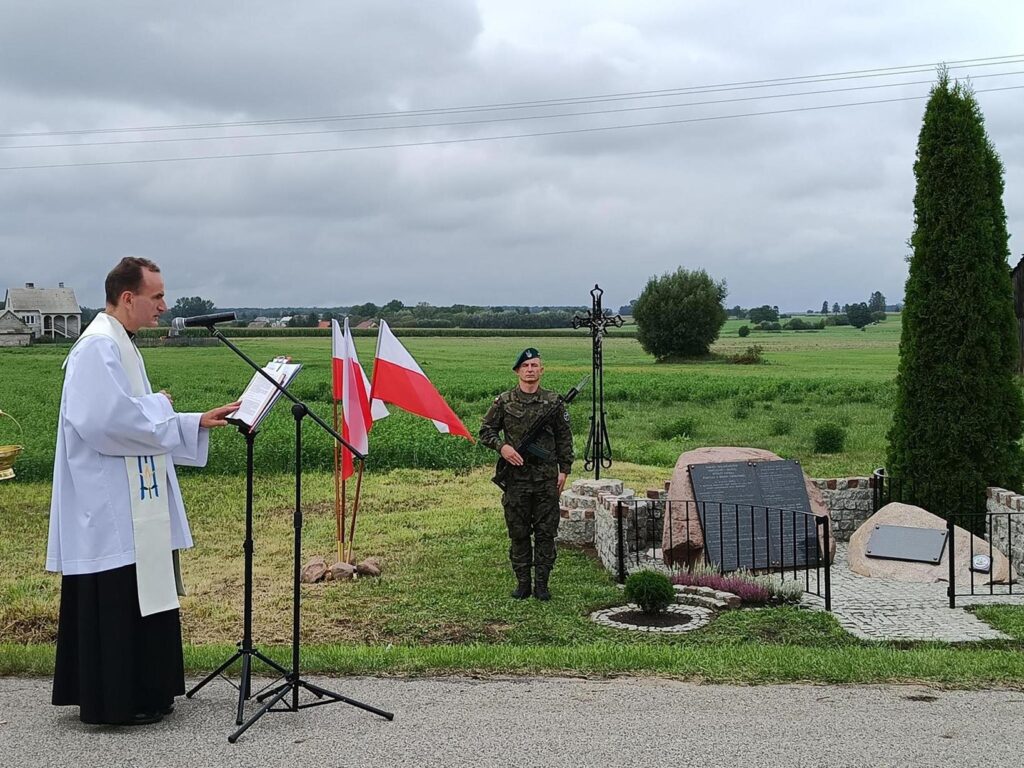 Dziękuję Księdzu Andrzejowi Gołaszewskiemu za uroczystą Mszę świętą, za modlitwę i poświęcenie Tablic Pamięci, dziękuję Panu Organiście Zdzisławowi Rybaczykowi i Panu Kościelnemu Andrzejowi Kalinowskiemu. Panu Kościelnemu dziękuję też za przekazanie krzyża na nasz Pomnik. Tym samym wiekowy, zabytkowy krzyż, został uratowany od zniszczenia. Księdzu Proboszczowi dr. Kazimierzowi Wołpiukowi dziękuję za okazaną pomoc.