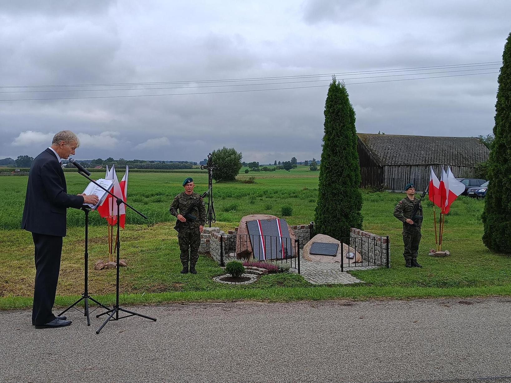 Poseł RP Arkadiusz Czartoryski w swoim wystąpieniu bardziej szczegółowo opisał dzień 10 września 1939 r. Powiedział, że to pierwsza uroczystość w powiecie ostrołęckim, którą objął patronatem prezydent RP Karol Nawrocki. Serdecznie pogratulował uroczystości Panu Zbigniewowi Gołąbkowi – Prezesowi SHZO. W swoim wystąpieniu Poseł RP Marcin Grabowski stwierdził, że nie wolno nam zapomnieć o pomordowanych, którzy chcieli żyć dla Polski, lecz niestety wróg im na to nie pozwolił. Wystąpienie zakończył okrzykiem „Niech żyje Polska!”