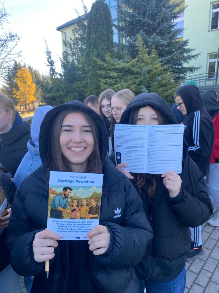 Mieszkańcy Gminy Czerwin 20 października 2025 r., wzięli udział w wyjątkowym wydarzeniu edukacyjnym „Spacer z detektorem smogu”. Spotkanie rozpoczęło się przy Szkole Podstawowej w Czerwinie i zgromadziło dzieci, młodzież oraz dorosłych zainteresowanych tematyką jakości powietrza.