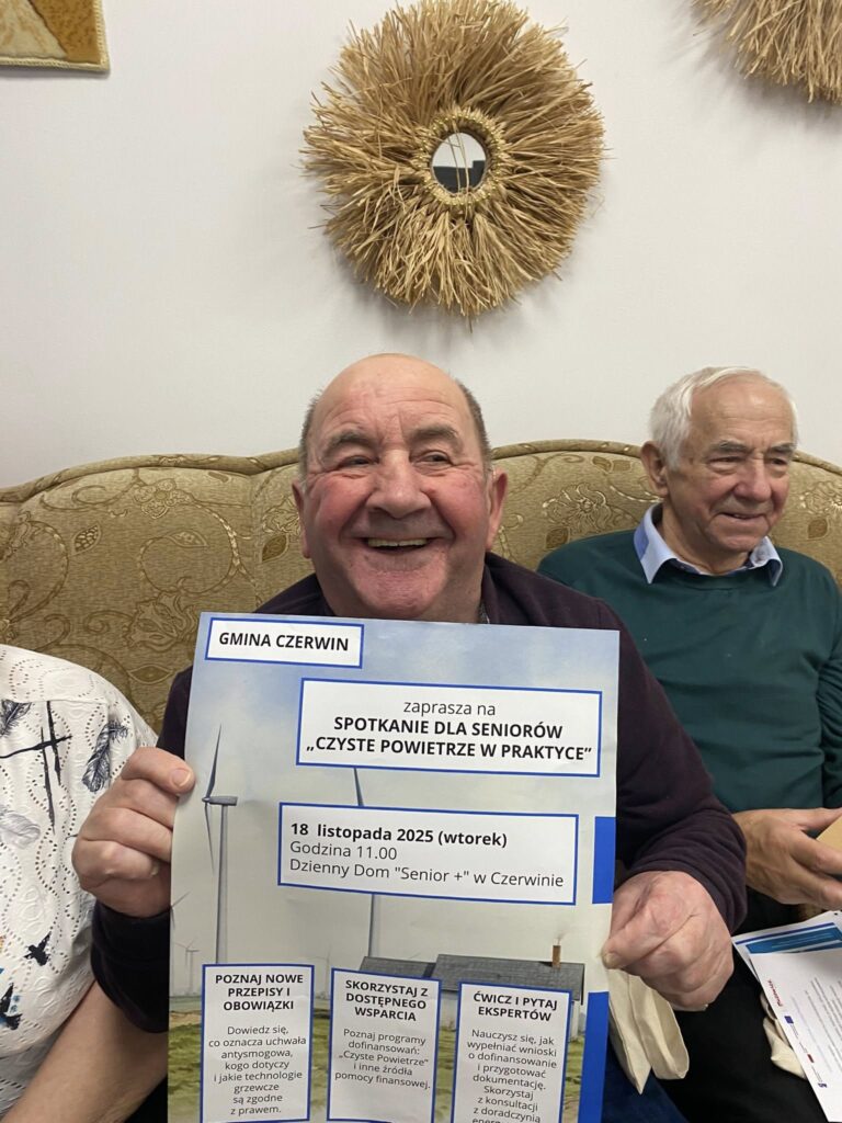 W dniu dzisiejszym w Dziennym Domu „Senior+” w Czerwinie odbyło się spotkanie dla seniorów poświęcone czystemu powietrzu oraz zasadom mazowieckiej uchwały antysmogowej.