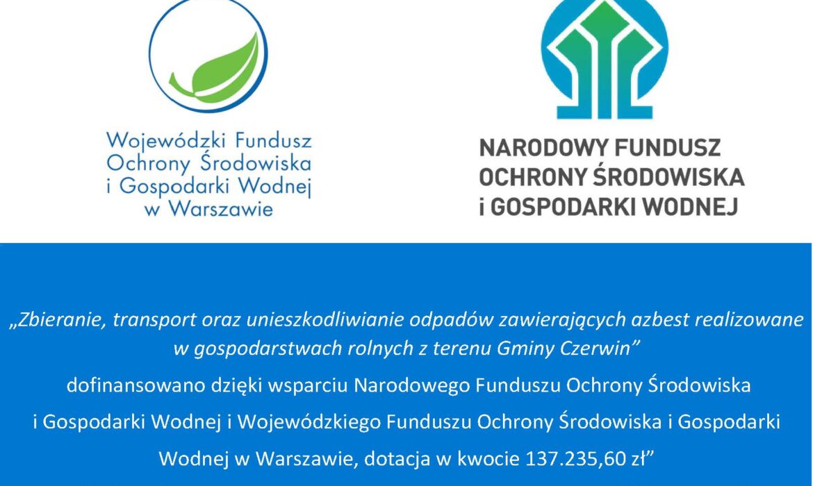 Zbieranie, transport oraz unieszkodliwianie odpadów zawierających azbest realizowane w gospodarstwach rolnych z terenu Gminy Czerwin