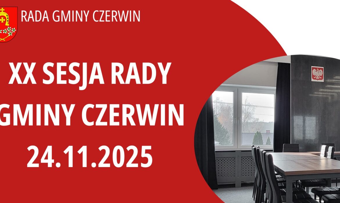 Zawiadomienie o zwołaniu XX Sesji Rady Gminy Czerwin w dniu 24.11.2025 r. o godz. 15:00 w sali konferencyjnej Urzędu Gminy Czerwin. DO POBRANIA: Zawiadomienie