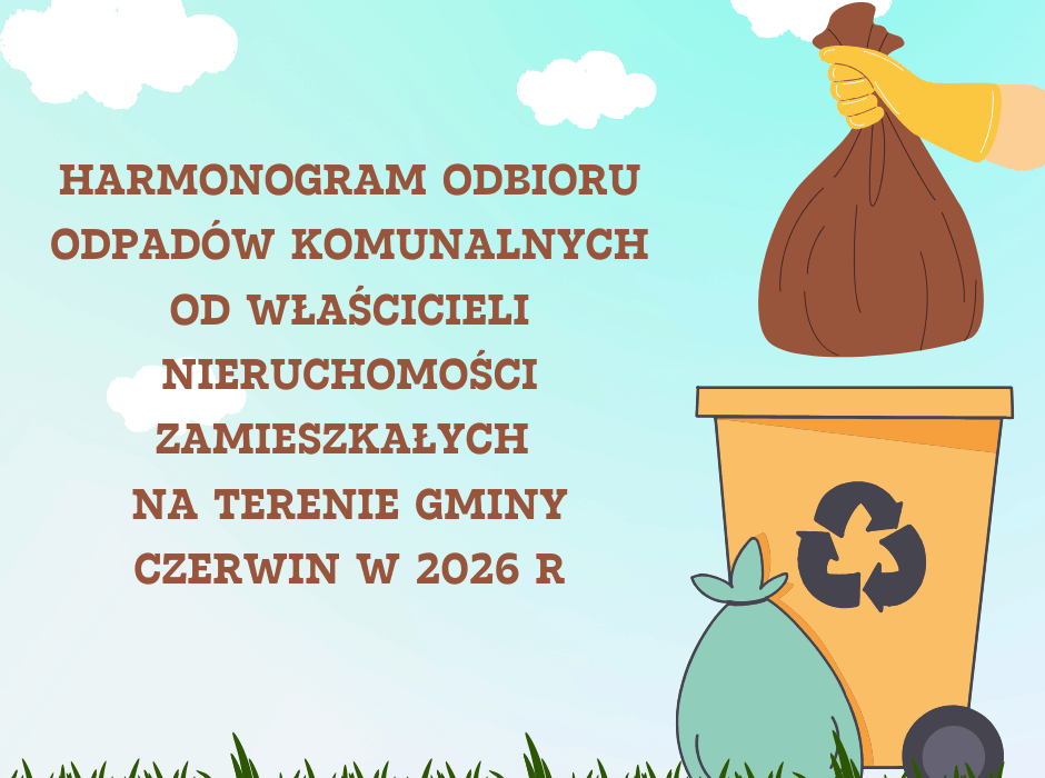 HARMONOGRAM ODBIORU ODPADÓW KOMUNALNYCH OD WŁAŚCICIELI NIERUCHOMOŚCI ZAMIESZKAŁYCH NA TERENIE GMINY CZERWIN W 2026 R